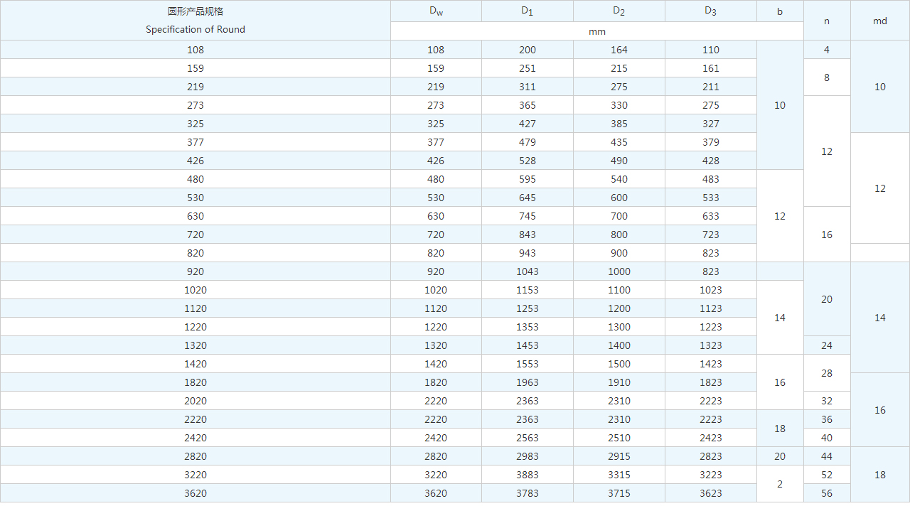 圓形產(chǎn)品規(guī)格 Specification of Round |
