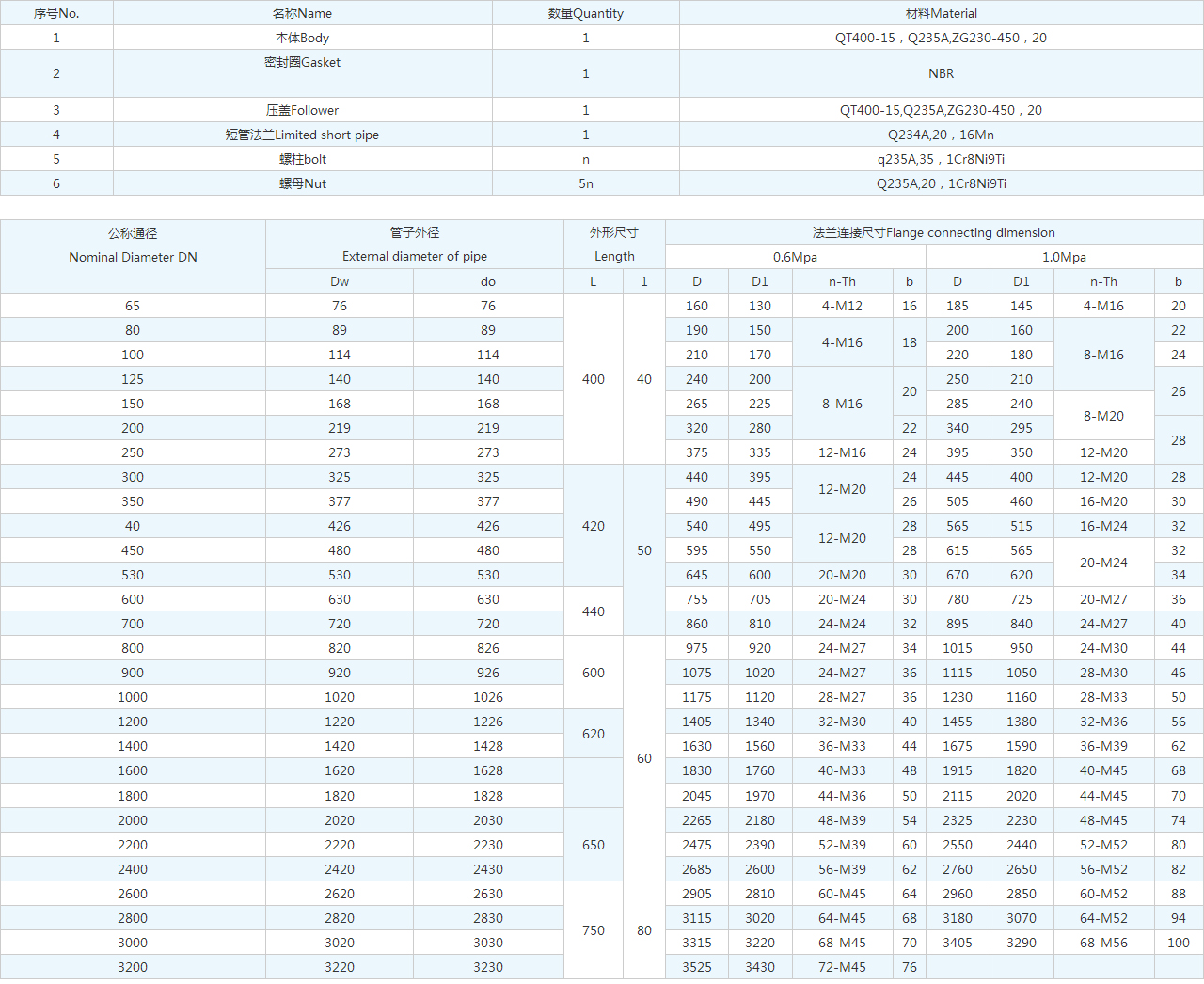 | 4 | 短管法蘭Limited short pipe | 1 | Q234A,20,16Mn |