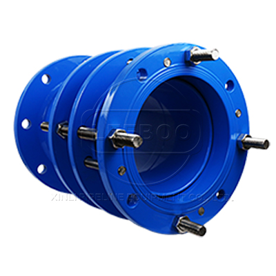 可拆式雙法蘭傳力接頭:安裝在管道上后,根據(jù)所需的伸縮距離進行限位,擰緊螺母,彈性密封圈在螺母壓蓋的作用下依靠相互傾斜度緊壓在管子外圈起密封和連接作用,主要和管道閥門連接不但起到管道補償作用,更方便了閥門的維修及更換。VSSJAFC(CC2F) Dismantling Double Flanges Transmission Joint:After installing on the pipe,sdjust to a telescopic distance and screw down the nuts .Then on the inflection of nuts ,seal and connect on the outer of pipe by a elastic sealing-washer ,connecting with the pipe valve is not only for the tube compensation ,but for the easy access in the event of repair or replacement.