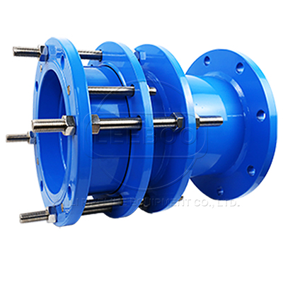 VSSJAFC型可拆式雙法蘭傳力接頭是有松套伸縮接頭和短管法蘭、傳力螺桿等構(gòu)件組成,它能傳遞被連接件的壓力推力(盲板力)和補償管路誤差,并且具有一定的調(diào)節(jié)量,方便實際的施工環(huán)境進行調(diào)整。
