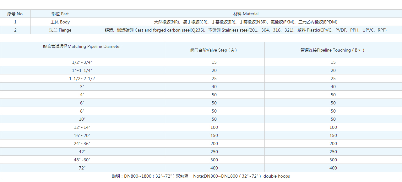 | 說明:DN800~1800(32″~72″)雙包箍 Note:DN800~DN1800(32″~72″) double hoops | ||